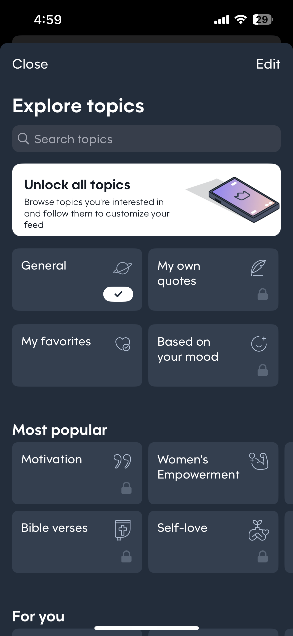 Motivation offers catergorized qoutes in app settings