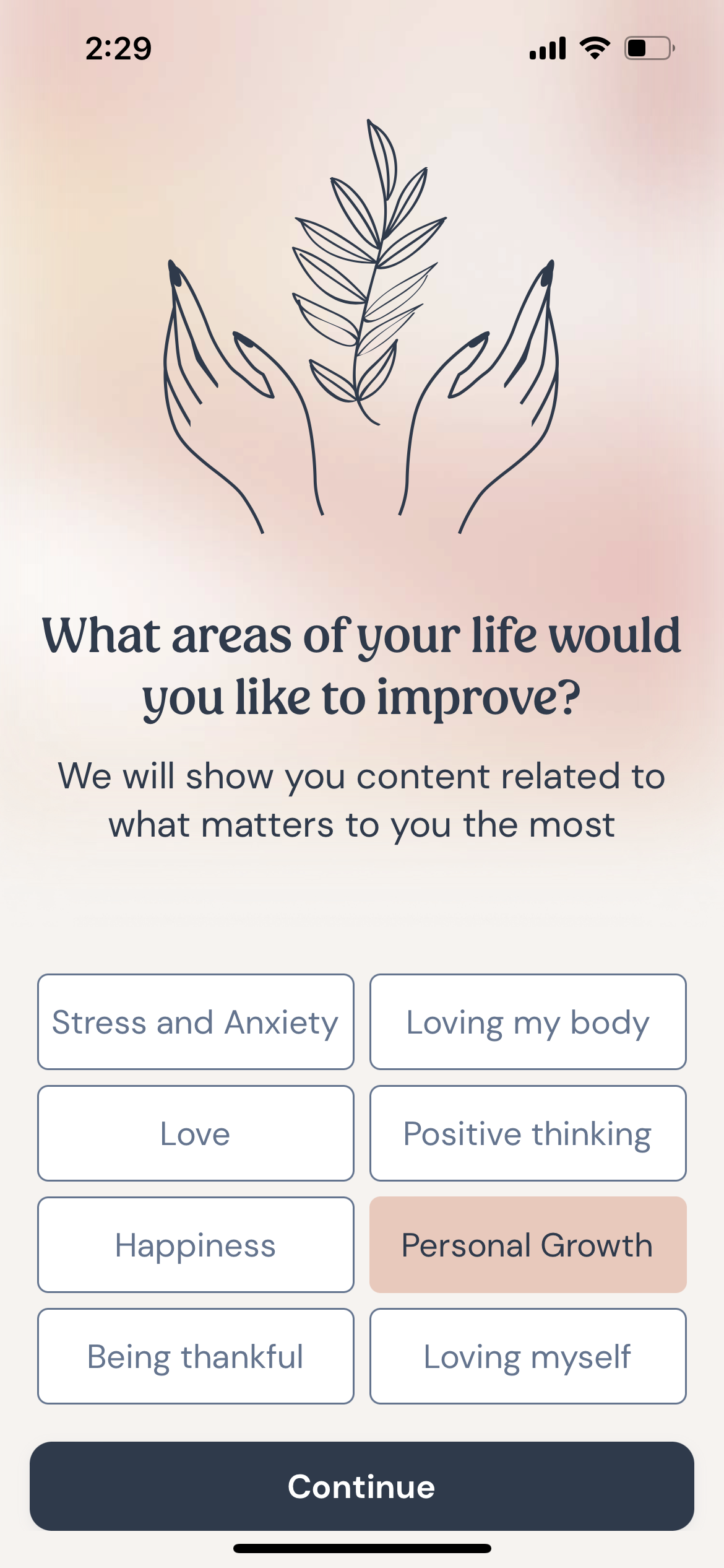 When users open the app for the first time, they’re able to select their personalized motivational preferences
